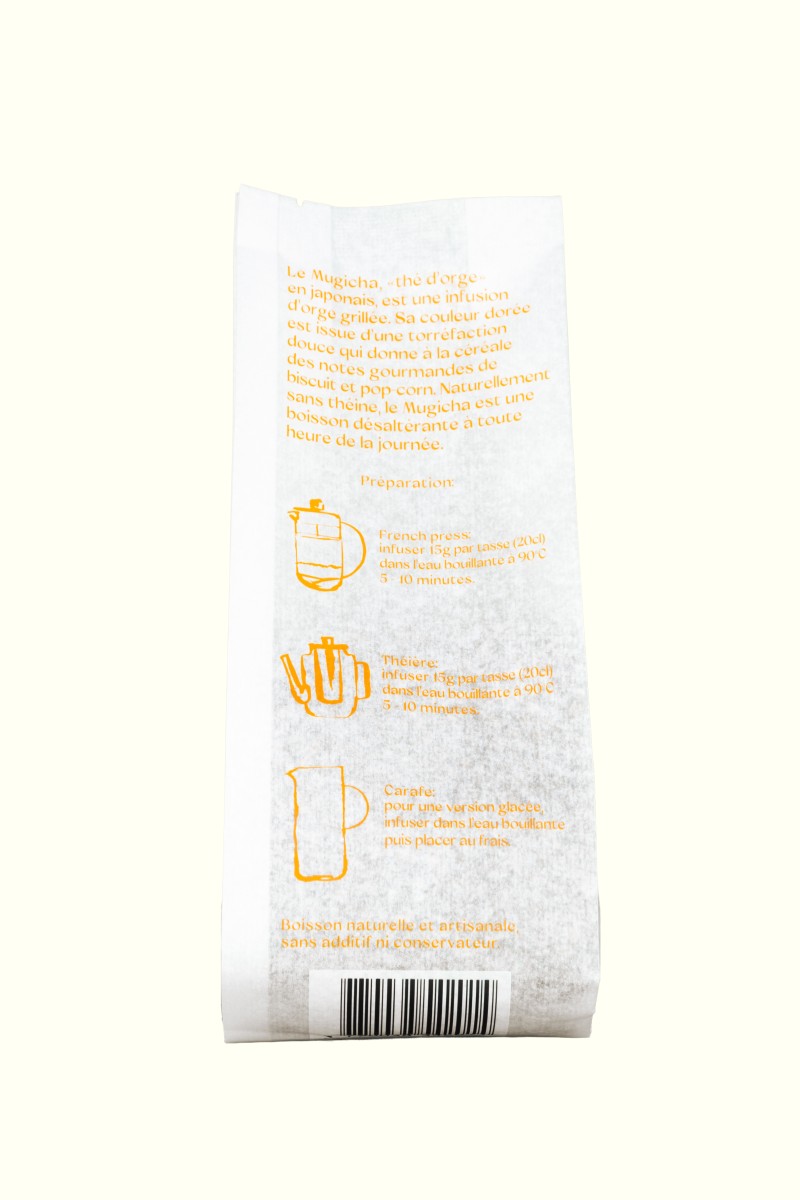 Le Mugicha, "thé d'orge" en japonais, est une infusion d’orge grillée. Sa couleur dorée est issue d’une torréfaction douce qui donne à la céréale des notes gourmandes de biscuit et pop-corn. Naturellement sans théine, le Mugicha est une boisson désaltérante à toute heure de la journée.