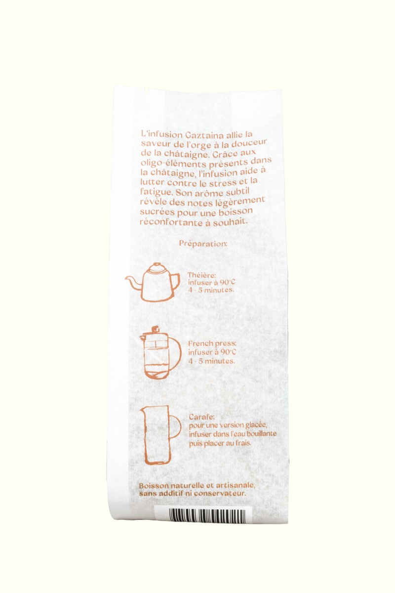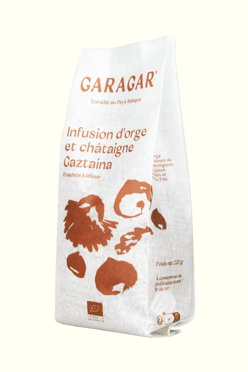 L'infusion Gaztaina allie la saveur de l’orge à la douceur de la châtaigne. En plus de son goût gourmand, naturellement sucré, la châtaigne a de nombreux avantages pour la santé. Généreuse en potassium et magnésium qui aident à lutter contre le stress et la fatigue, elle apporte des quantités appréciables de calcium et de fer ainsi que de nombreux oligo-éléments comme le manganèse, le cuivre, le zinc, le sélénium, l’iode. C’est aussi un apport en vitamine E, B, et C.